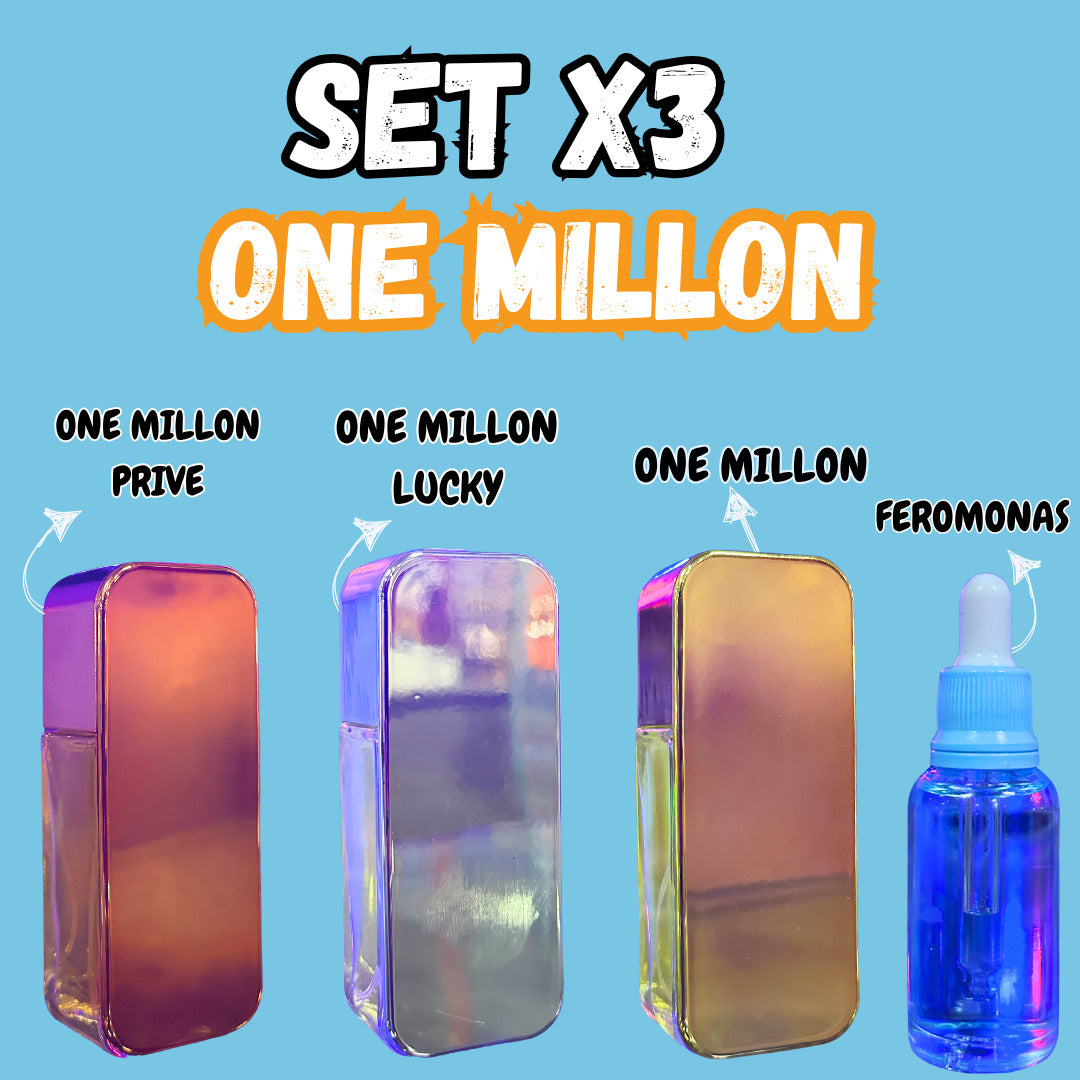Combo con 4 productos, el cual se caracteriza por tener los 3 perfumes más deliciosos de la línea One Million, (One Million Clasica, One Million Lucky y One Million Prive) cada uno viene en envase de lujo y de 40ml. ¡Eleva tus perfumes con los potenciadores del combo!