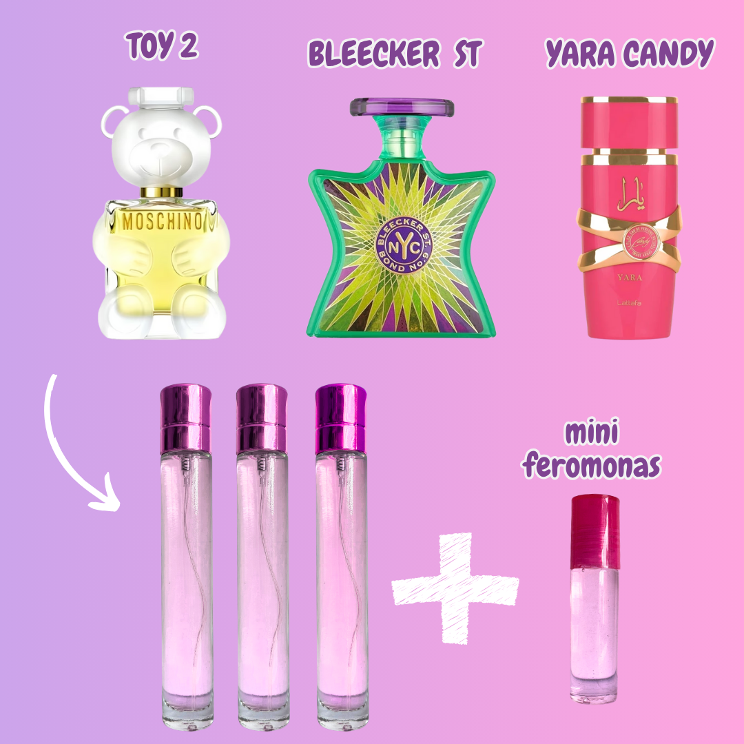 El set exclusive se caracteriza por tener perfumes de ultima tendencia en el mercado. 3 delicias en envases de 50ml; Bleecker Street (Perfume que usa Karol G) es un aroma cítrico y versátil, perfecto para el clima cálido. Toy 2 es un perfume cítrico un poco afrutado dejando una sensación de un aroma limpio. Y Yara Candy es un perfume con aroma a gomita el cual puedes variar para algún tipo de reunión en la noche, queda perfecto! Ya que su aroma es encantador y seductor.